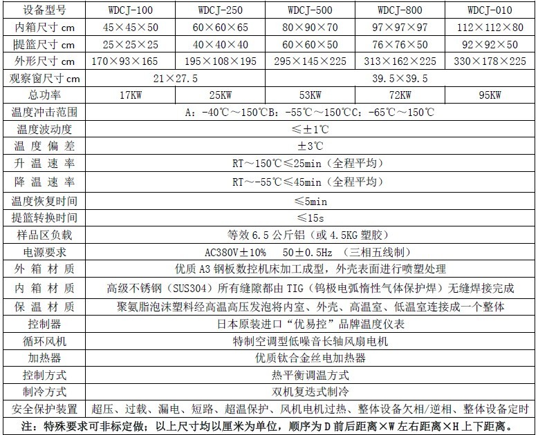 高低溫沖擊試驗箱主控制器采用進口日本“OYO”雙回路高精度液晶顯示觸摸按鍵溫度控制器。該控制器采用液晶顯示觸摸屏,可顯示設定參數(shù)、試驗曲線、運行時間、加熱器工作狀態(tài),PID參數(shù)自整定功能??刂瞥绦虻木幹撇捎萌藱C對話方式,僅需設定溫度,就可實現(xiàn)制冷機自動運行功能??刂葡到y(tǒng)具備完善的檢測裝置能自動進行詳細的故障顯示。報警,配置485通訊接口及運行軟件。設定精度:溫度:0.1℃ 時間:Is用戶程序容量:10×99段。運行方式:程序運行,恒定運行。獨立超溫保護儀表。設備工作時間累計計時器。低溫區(qū)、高溫區(qū)轉換時間小于等于15秒。 溫度恢復時間小于等于5分鐘。