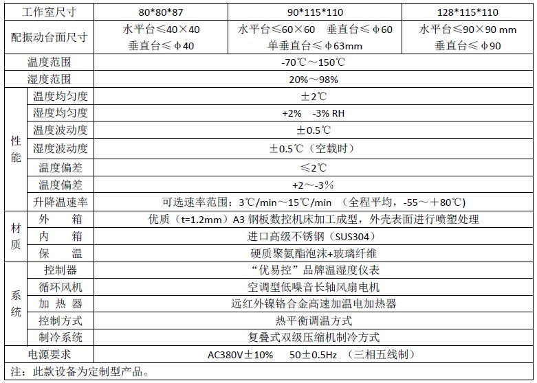 溫濕度振動三綜合試驗機主體部分:主體外殼采用優(yōu)質(zhì)A3鋼板并且經(jīng)過噴塑處理,內(nèi)膽采用SUS高級不銹鋼鏡面板保溫介質(zhì)為超細(xì)玻璃棉;