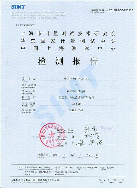 >>淋雨試驗箱檢測報告-上海計量院-中國電科院