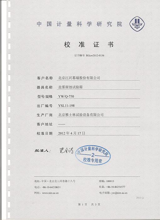 >>鹽霧腐蝕試驗(yàn)箱校準(zhǔn)證書(shū)-中國(guó)計(jì)量院-江河幕墻