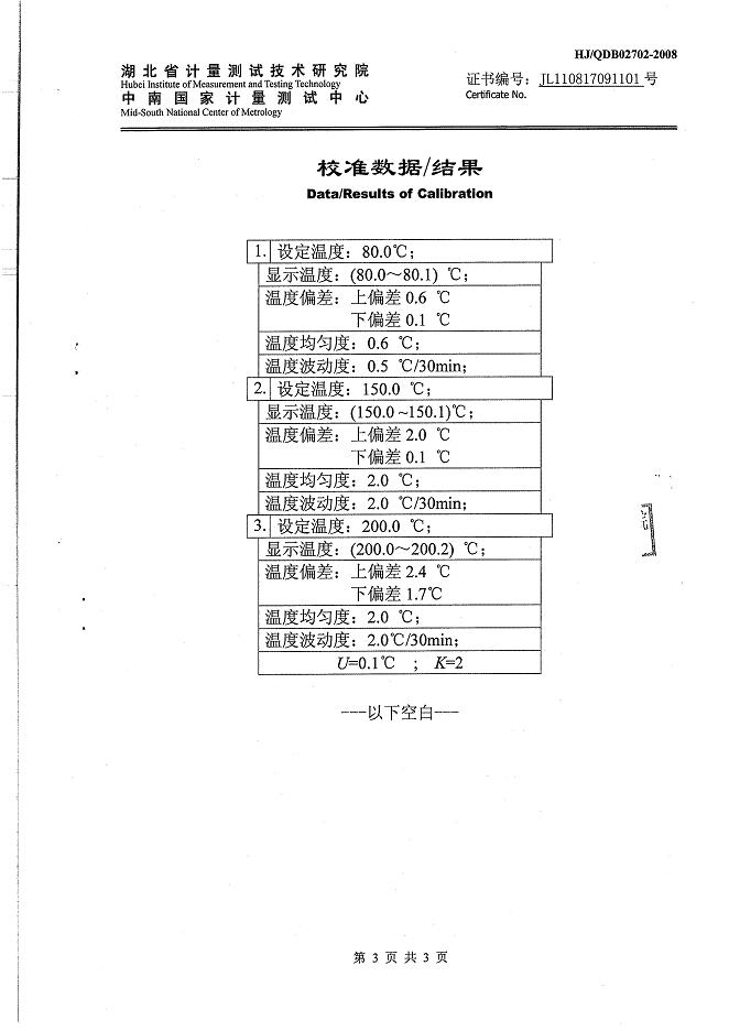高溫試驗箱校準(zhǔn)證書-湖北計量院-邦迪集團(tuán)