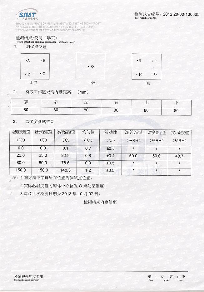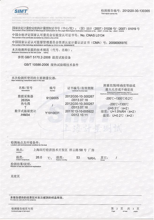 >>恒溫恒濕試驗(yàn)箱檢測報告-上海計(jì)量院-天威保變